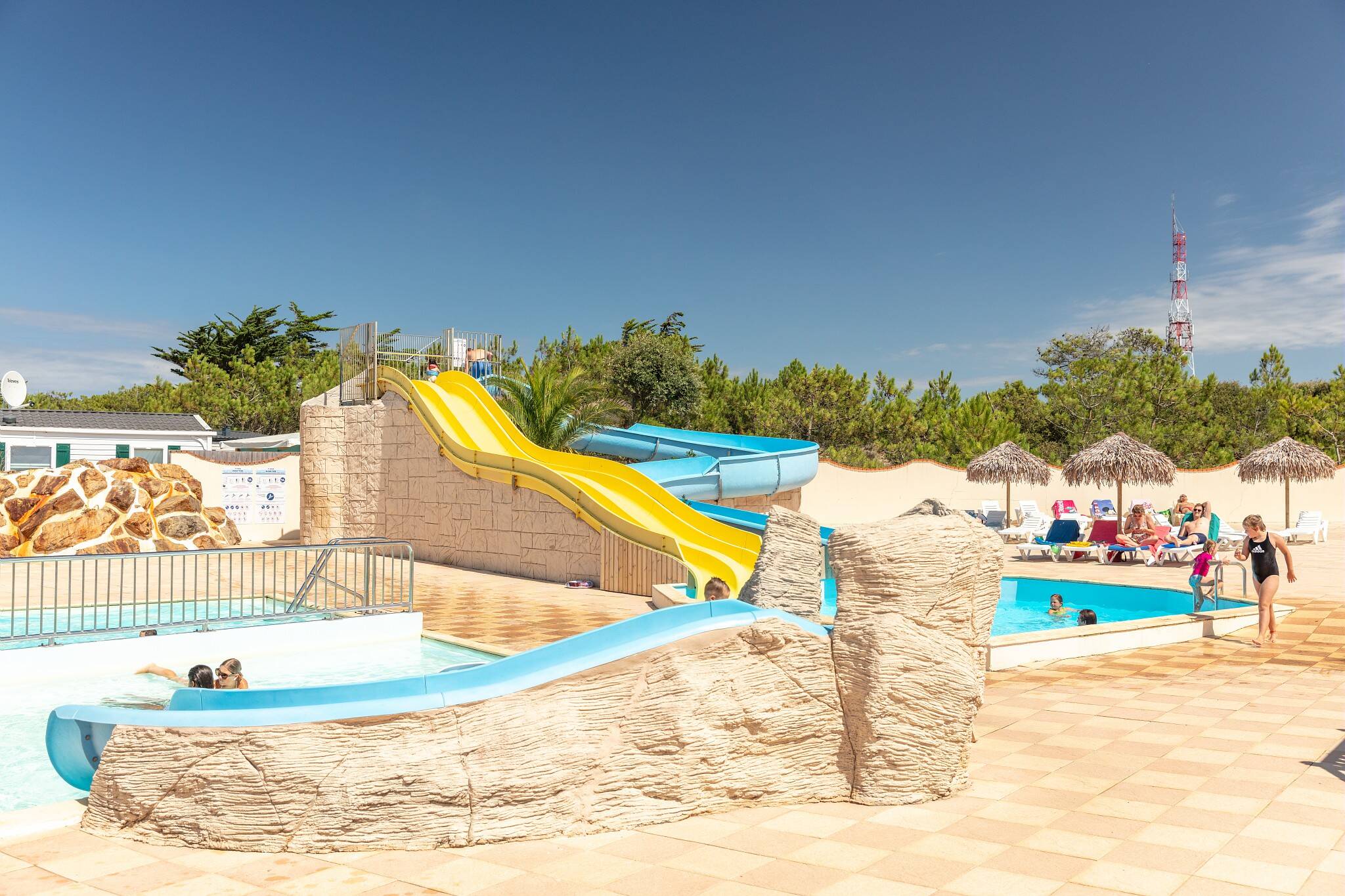 - L'espace aquatique vous attend avec sa piscine chauffée, ses toboggans et sa pataugeoire pour le bonheur de toute la famille...